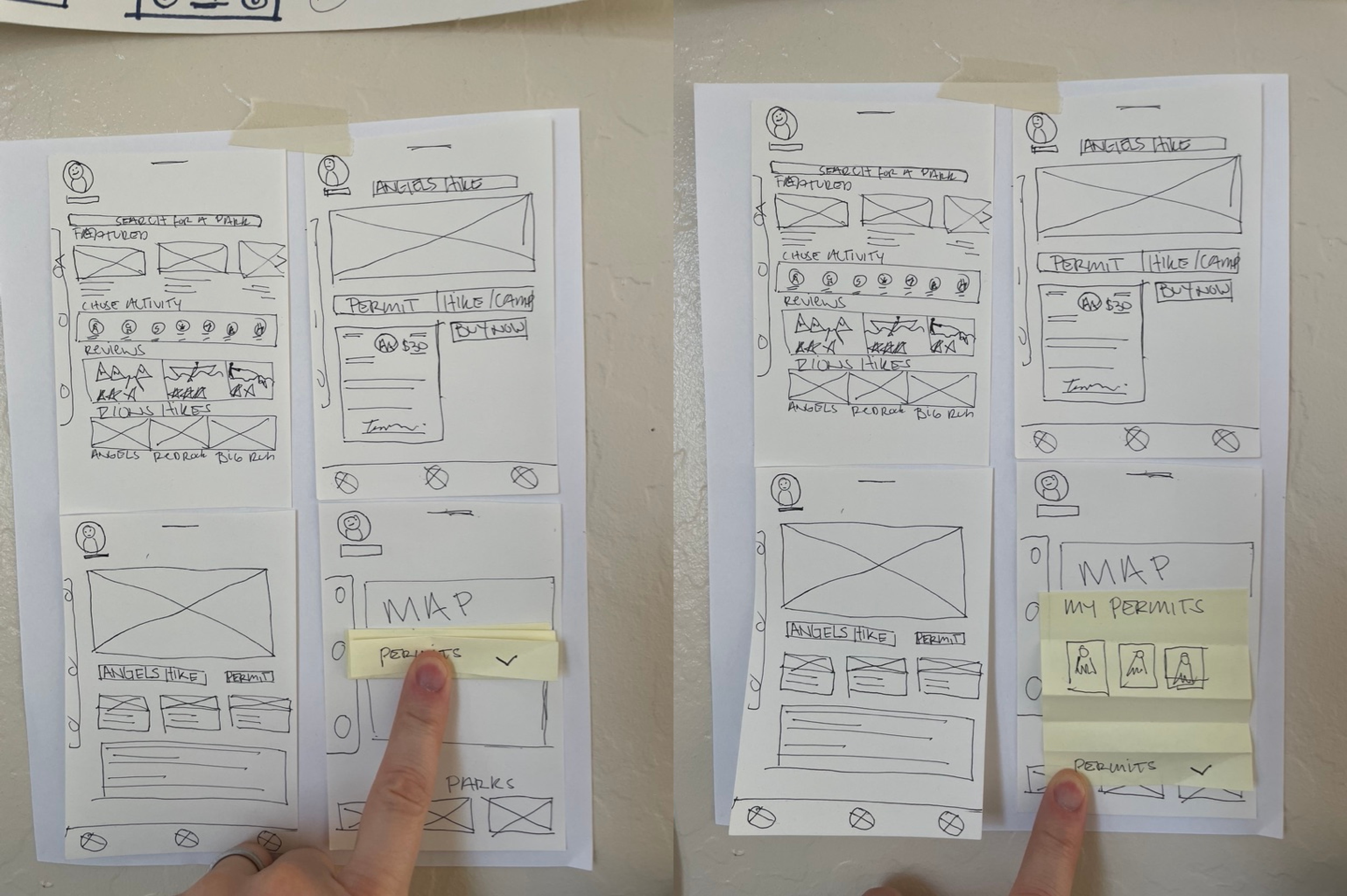 I put the solution sketch in front of users who had experience with national parks and had them critique the main concept. I made 3 changes based on the suggestions of users.